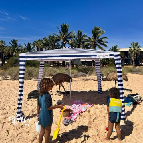 We saved Monkey Mia for our last day, and it was the perfect finale. Known worldwide for its wild dolphin interactions, we timed it just right for the second dolphin feeding session of the morning. The dolphins came close enough for the kids to see every detail — though, in my opinion, it did feel very much like a Sea World–style show.